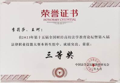 严静老师指导,李莉莎、王珂同学共同提交的“非物质文化遗产群体性智力成果权保障机制研究一一以天津市为例” 参赛作品,荣获本科组三等奖;沃耘老师和宁伟老师共同指导,22级研究生乔鹏飞同学提交的“个人信息民事侵权调查报告”参赛作品,荣获研究生组三等奖。