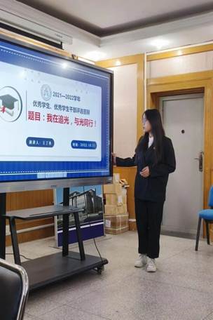 接下来进行了王克昌奖学金、市级优秀学生及优秀学生干部的评审会。学院党政领导、教师代表及辅导员担任评委。选手们按照前期的抽签顺序依次上台进行展示,分享了自己取得的成就与努力的故事。选手们的精彩演讲赢得了现场师生们的阵阵掌声!