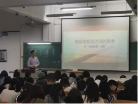 谢斐老师以“货拉拉事件为主的事实与规范问题”为例对事实与规范进行了分析,并且为同学们播放了案件相关视频,同学们对网约车的安全防范意识有了进一步提高,并且也学习到了其中所涉及的法律知识,例如车主负有保护乘车人的义务,未采取有效措施可能会导致犯罪。除此之外,谢斐老师与同学们进行了积极的互动,其中一位同学向老师提出在本案是否可以对司机采用“期待可能性”相关法律规定,谢老师给予了肯定,但同时也指出“期待可能性”在实际上并不经常适用,司法机关以学习它的精神为主。