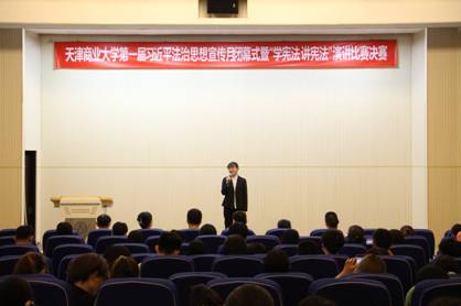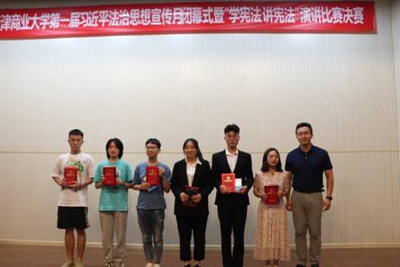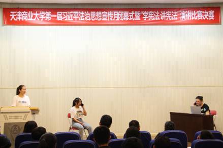 习近平法治思想宣传月历时一个月,期间举办了宪法知识竞赛、校园普法活动、社区普法志愿服务等丰富多彩的普法活动,闭幕式现场,还开展了“学宪法 讲宪法”演讲比赛,充分展现了天商学子深入学习贯彻习近平法治思想,弘扬法治精神的良好精神面貌。