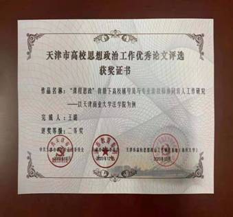王璐老师获“2020年度天津市高校思想政治工作优秀论文评选”二等奖