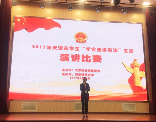 本次比赛由天津市教育委员会主办,以“学宪法,讲宪法”为主题,旨在加强学生法制教育,认真贯彻落实习近平总书记重要讲话指示精神,切实加强宪法学习的要求,丰富创新青少年学生法制教育内容和形式,全面推动各级各类学校广泛深入开展宪法教育,引导和促进广大青少年学生学习法治知识,增强法治意识,弘扬宪法精神推动宪法实施。来自全市各高校与高职的学生代表参加了此次比赛。