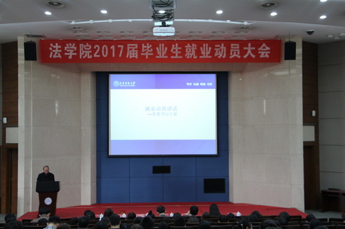 2017届毕业生就业动员大会在图书馆国际报告厅举行。学院全体领导、系主任、辅导员出席大会,2017届全体毕业生参加,大会由学院党委副书记刘桂涛主持。