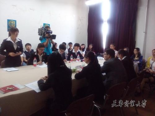 学生谷雨、叶丹丹、王江涛、王俊琦组成的代表队与南开大学代表队同台竞技,经过紧张激烈的较量,我校代表队获得了初赛第一场的胜利。